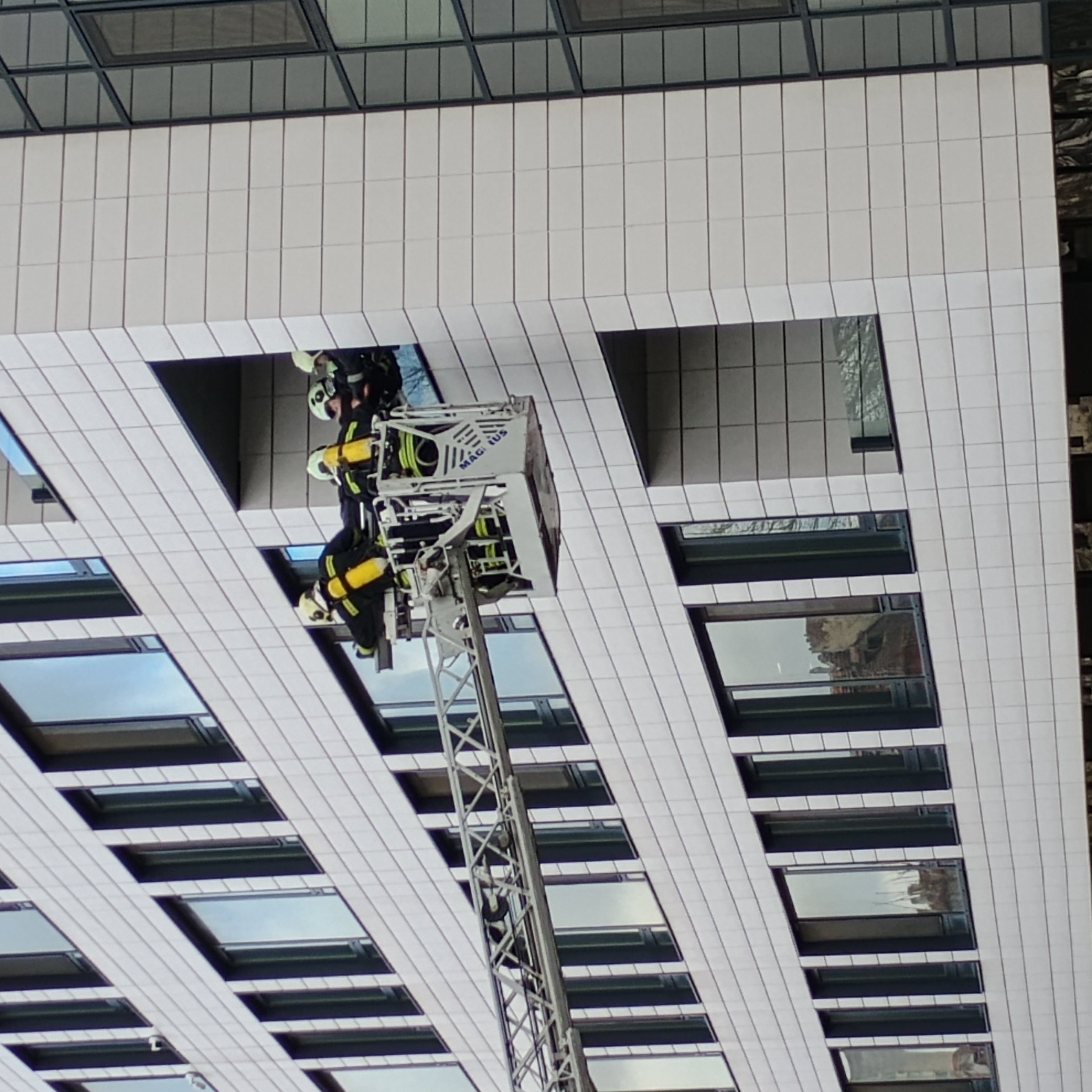 Екипи на 02 РСПБЗН към СДПБЗН извършиха действия по подход към мястото на задимяването/пожара, разузнаване на задимяването/пожара, спасяване на обгазен служител на ДКСИ с използване на пожарна стълба и оказване на необходимата медицинска помощ на обгазения служител.